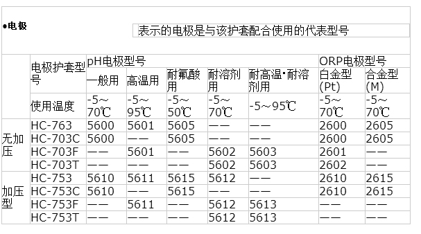 與KCl補給式電極組合使用的浸沒式pH?ORP檢測器,內(nèi)部存有大量的KCl參比液。可使用在從排水處理過程到測定條件嚴酷的工業(yè)過程等不同的測定條件中,應(yīng)用十分廣泛。并有多種液接材質(zhì)以及不同種類的電極可供選擇。此外,為了維持長期穩(wěn)定的參比點位,保證可靠性高的測量,還有各種加壓式浸沒檢測器可供選擇。